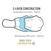 Made from 2 layers of Polycotton fabric (65% polyester, 35% cotton) and a Polypropylene core (3 layer total)