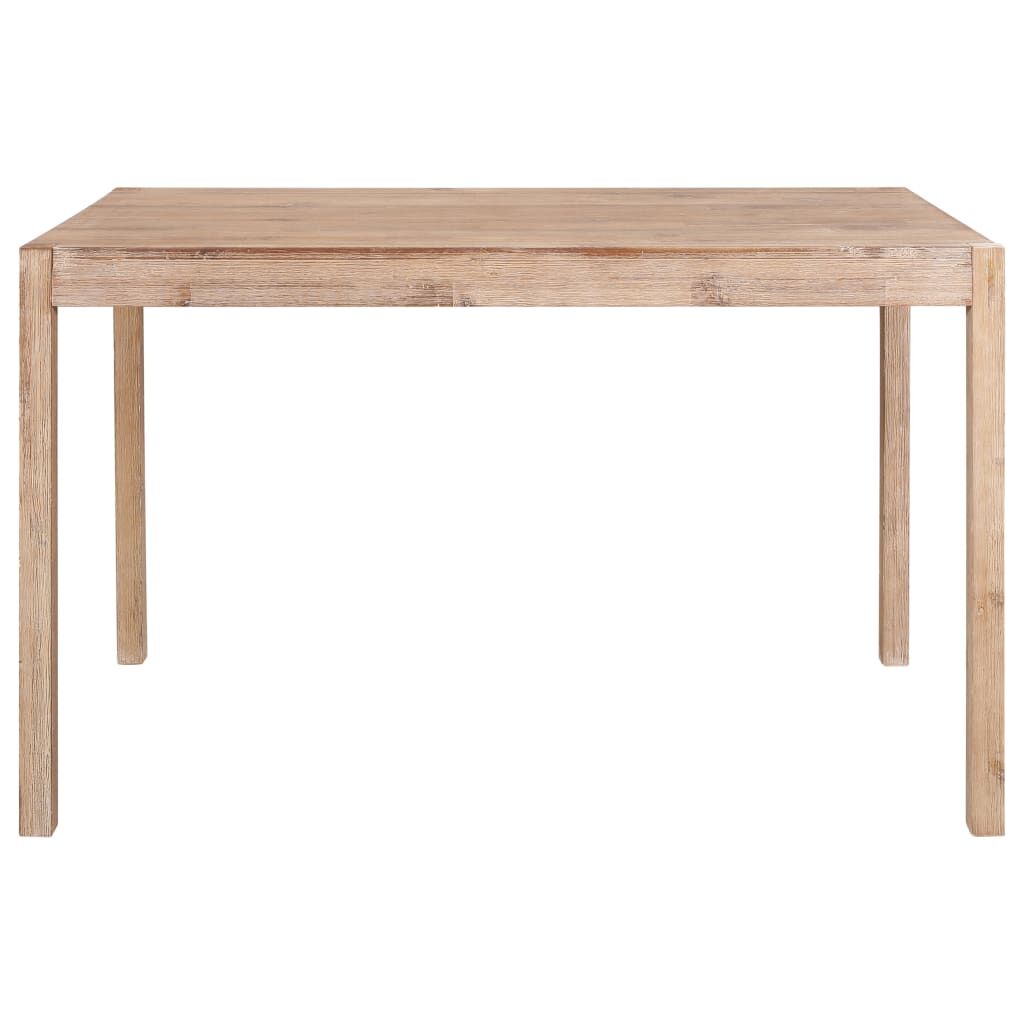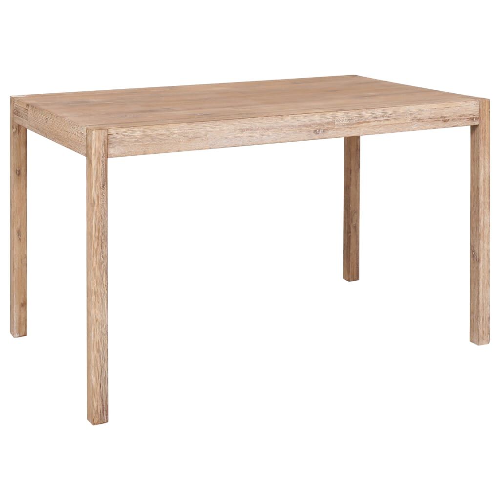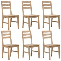 This 7-piece wooden dining set features an understated, timeless design and will add a touch of style to your interior. Made of solid acacia wood, the dining table and chairs are exceedingly stable and durable. Additionally, the backrests of the chairs add to seating comfort. This dining set is easy to clean with just a damp cloth. All table and chairs are easy to assemble. Delivery includes 1 table and 6 chairs.