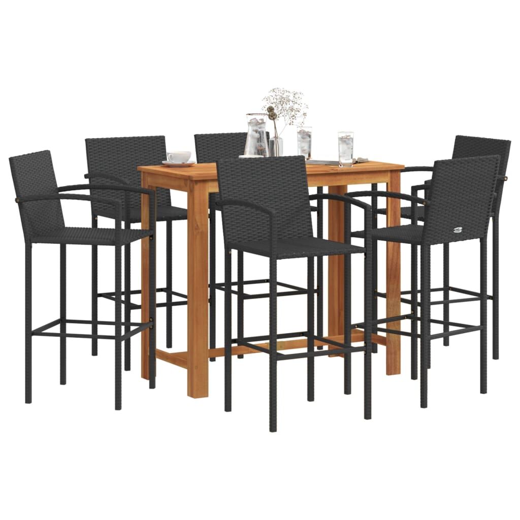 This garden bar set with an elegant and contemporary design will be a great choice for dining or relaxing in the garden. Durable material: PE rattan, also known as poly rattan, is a strong, low-maintenance synthetic material that looks like natural rattan. It's lightweight, easy to clean, and commonly used for outdoor furniture due to its durability and weather-resistant properties. Made of lightweight PE rattan, these bar stools are sturdy and easy to move. Sturdy tabletop: Solid acacia wood is a beautiful natural material. Acacia wood is a tropical hardwood, which is dense, sturdy, and durable. Made of solid acacia wood, this bar table is sturdy and stable. You can place your snacks, drinks and any of your favourite decorations. Comfortable seating experience: The built-in footrests add additional seating comfort for the stool. Good to know:To make sure your outdoor furniture stays beautiful, we recommend protecting it with a waterproof cover.