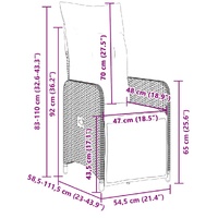 Enjoy a coffee or have a chat with your family and friends in the garden, backyard, or on the balcony with this comfortable bistro set! Durable material: PE rattan, also known as poly rattan, is a strong, low-maintenance synthetic material that looks like natural rattan. It's lightweight, easy to clean, and commonly used for outdoor furniture due to its durability and weather-resistant properties.Adjustable backrest and footrest: This garden seat has a handle. You can adjust the backrest and footrest to any position by pulling the handle, and quickly return it to its original position.Comfortable seat experience: This outdoor furniture, complete with thickly padded cushions, offers a comfortable seating experience.Removable and washable cover: These seat cushions feature removable covers for easy washing and maintenance. The back cushions have a flap at the back for easy attachment to the backrests.Stable and easy-to-clean tabletop: This garden table has an acacia wood top that is sturdy, durable, and easy to clean with a damp cloth. Good to know:To make sure your outdoor furniture stays beautiful, we recommend protecting it with a waterproof cover.