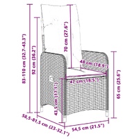 Enjoy a coffee or have a chat with your family and friends in the garden, backyard, or on the balcony with this comfortable bistro set! Durable material: PE rattan, also known as poly rattan, is a strong, low-maintenance synthetic material that looks like natural rattan. It's lightweight, easy to clean, and commonly used for outdoor furniture due to its durability and weather-resistant properties.Adjustable backrest: This garden seat has a handle. You can adjust the backrest to any position by pulling the handle, and quickly return it to its original position.Comfortable seat experience: This outdoor furniture, complete with thickly padded cushions, offers a comfortable seating experience.Removable and washable cover: These seat cushions feature removable covers for easy washing and maintenance. The back cushions have a flap at the back for easy attachment to the backrests.Glass tabletop: The outdoor table's top is made from strong and durable tempered glass, making it easy to clean with a damp cloth and adding a touch of elegance to your outdoor space. Good to know:To make sure your outdoor furniture stays beautiful, we recommend protecting it with a waterproof cover.
