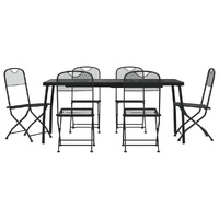Enjoy a nice meal or afternoon tea in your outdoor space with this garden dining set! Featuring an elegant design, it will become the focal point of your garden and patio! Sturdy frame: The metal frame makes this garden furniture set sturdy and durable, providing a lifelong service.Mesh design: This dining set, with the mesh design, can effectively avoid water accumulation, adding a stylish appearance to your outdoor living space.Practical tabletop: The sturdy tabletop of the garden dining table is perfect for placing meals, drinks, and other decorative items.Easy movement: These garden dining chairs are foldable to save space when not in use. You can easily carry them with you anywhere on your outdoor trips. Good to know:To make sure your outdoor furniture stays beautiful, we recommend protecting it with a waterproof cover.