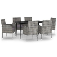 Enjoy a nice meal or afternoon tea in your outdoor space with this garden dining set! Featuring an elegant design, it will become the focal point of your garden and patio! The practical outdoor dining set has a steel frame, making it strong and sturdy. The garden chairs are made of water-resistant and maintenance-free PE rattan, making them perfect for outdoor use. The smooth glass tabletop is easy to clean with a damp cloth and excellent for placing meals, drinks and other decorative items. In addition, the thick, removable seat cushions are highly cosy. Note: In order to extend the life of your outdoor furniture, we recommend you to clean it regularly and do not leave it outdoors without protection unnecessarily.Clean: Use a mild soap solution.Storing: If possible, store in a cool, dry place indoors. If the product is stored outdoors, protect it with a waterproof cover. Wipe and dry the excess water or snow from flat surfaces after a rain or snowfall. Allow sufficient air circulation to avoid moisture-related damage.