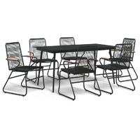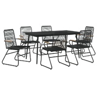Enjoy a cosy coffee time in your outdoor space with this garden dining set! This dining set is a perfect addition to your garden and terrace, creating a lasting impression! Durable PVC rattan: PVC rattan is a sturdier and more durable option for natural rattan. PVC is known for its weather-resistant qualities like protection from UV rays and resistance to moisture.Sturdy frame: The steel frame of the garden dining set ensures sturdiness and stability.Sturdy tabletop: The sturdy tabletop of the dinner table is perfect for placing meals, drinks, vases, fruit bowls, or other decorative items.Comfortable seat experience: With a backrest and armrests, the garden seating allows you to sit back comfortably after a long day. Note:To make sure your outdoor furniture stays beautiful, we recommend protecting it with a waterproof cover.
