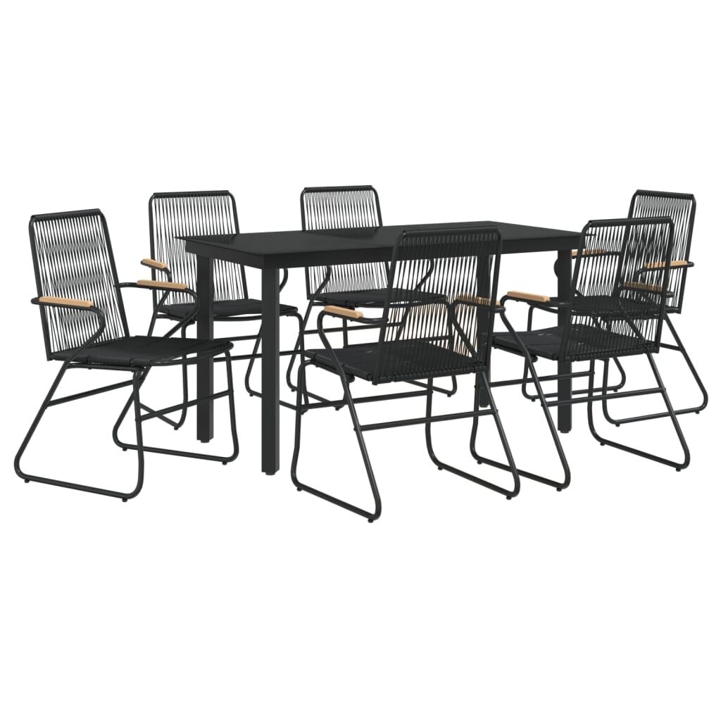 Relax and enjoy a lovely afternoon tea or any meal with your family and friends around this garden dining set! Durable PVC rattan: PVC rattan is a sturdier and more durable option for natural rattan. PVC is known for its weather-resistant qualities like protection from UV rays and resistance to moisture.Sturdy frame: The steel frames of the dining set ensure sturdiness and stability.Practical tabletop: The smooth glass tabletop is easy to clean with a damp cloth and is perfect for placing meals, drinks and other decorative items.Comfortable seating: The dining chair is designed with a backrest and armrests to offer you a comfortable seating experience. Note:To make sure your outdoor furniture stays beautiful, we recommend protecting it with a waterproof cover.