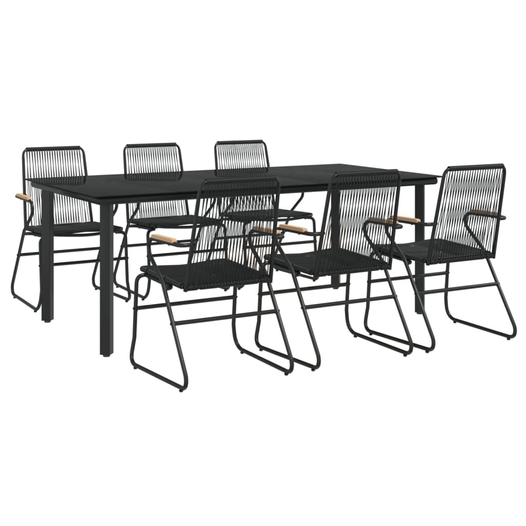 Relax and enjoy a lovely afternoon tea or any meal with your family and friends around this garden dining set! Durable PVC rattan: PVC rattan is a sturdier and more durable option for natural rattan. PVC is known for its weather-resistant qualities like protection from UV rays and resistance to moisture.Sturdy frame: The steel frames of the dining set ensure sturdiness and stability.Practical tabletop: The smooth glass tabletop is easy to clean with a damp cloth and is perfect for placing meals, drinks and other decorative items.Comfortable seating: The dining chair is designed with a backrest and armrests to offer you a comfortable seating experience. Note:To make sure your outdoor furniture stays beautiful, we recommend protecting it with a waterproof cover.