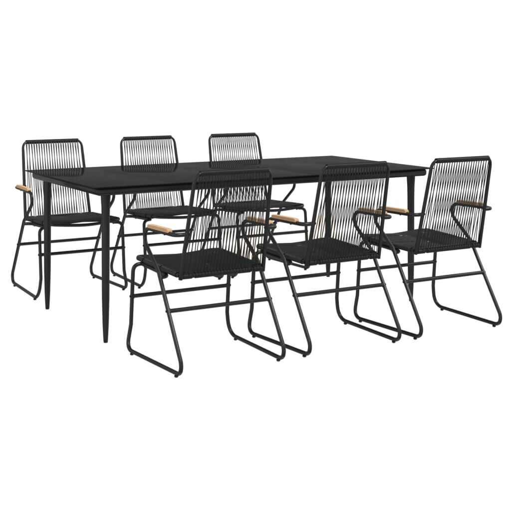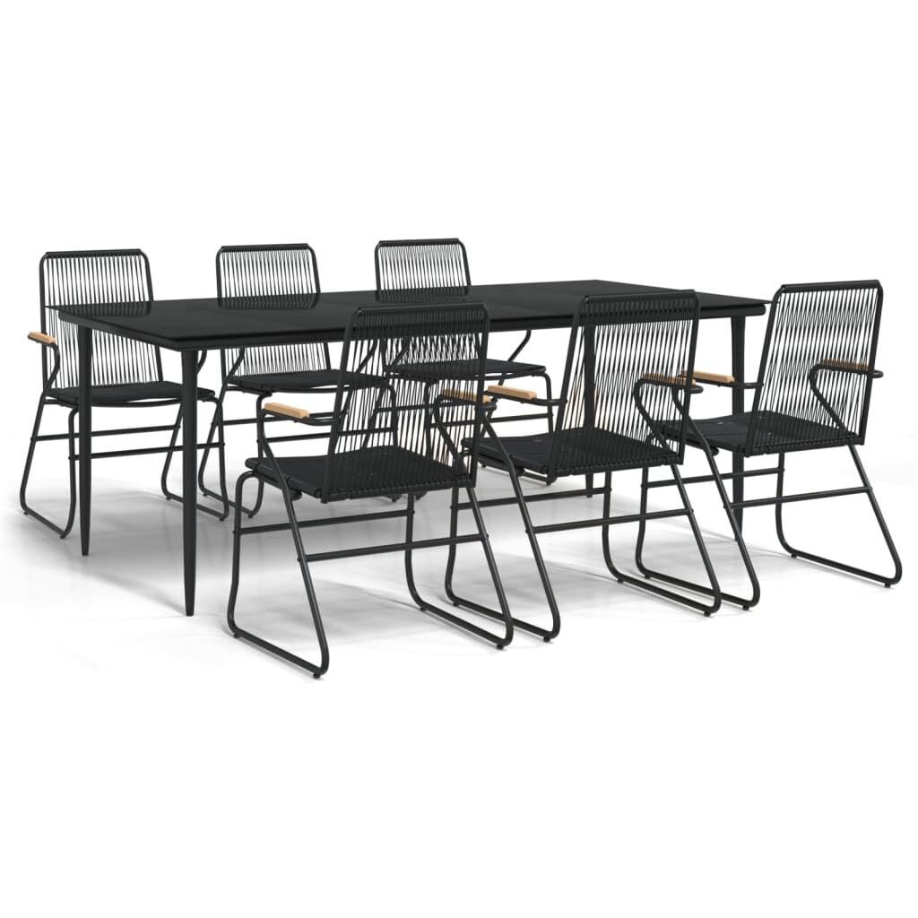 Relax and enjoy a lovely afternoon tea or any meal with your family and friends around this garden dining set! Durable PVC rattan: PVC rattan is a sturdier and more durable option for natural rattan. PVC is known for its weather-resistant qualities like protection from UV rays and resistance to moisture.Sturdy frame: The steel frames of the dining set ensure sturdiness and stability.Practical tabletop: The smooth glass tabletop is easy to clean with a damp cloth and is perfect for placing meals, drinks and other decorative items.Comfortable seating: The dining chair is designed with a backrest and armrests to offer you a comfortable seating experience. Note:To make sure your outdoor furniture stays beautiful, we recommend protecting it with a waterproof cover.