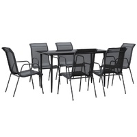Enjoy a nice meal or afternoon tea in your outdoor space with this garden dining set! Featuring an elegant design, it will become the focal point of your garden and patio! Stable frame: The armchairs and table have a powder-coated steel construction, making them sturdy and stable.Durable material: Thanks to the strong textilene fabric, these outdoor chairs are weather-resistant and easy to clean.Sturdy tabletop: The tabletop is made of tempered glass, making it easy to clean. Additionally, the tabletop is perfect for placing snacks, drinks, vases, fruit bowls, or other decorative items.Comfortable seating experience: Designed with a curved backrest and armrests, the garden armchair has a more ergonomic shape for maximum comfort. Good to know:To make sure your outdoor furniture stays beautiful, we recommend protecting it with a waterproof cover.