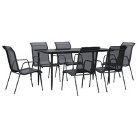 Enjoy a nice meal or afternoon tea in your outdoor space with this garden dining set! Featuring an elegant design, it will become the focal point of your garden and patio! Stable frame: The armchairs and table have a powder-coated steel construction, making them sturdy and stable.Durable material: Thanks to the strong textilene fabric, these outdoor chairs are weather-resistant and easy to clean.Sturdy tabletop: The tabletop is made of tempered glass, making it easy to clean. Additionally, the tabletop is perfect for placing snacks, drinks, vases, fruit bowls, or other decorative items.Comfortable seating experience: Designed with a curved backrest and armrests, the garden armchair has a more ergonomic shape for maximum comfort. Good to know:To make sure your outdoor furniture stays beautiful, we recommend protecting it with a waterproof cover.