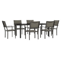 Enjoy a nice meal or afternoon tea in your outdoor space with this garden dining set! Featuring an elegant design, it will become the focal point of your garden and patio! Stable frame: The armchairs and table have a powder-coated steel construction, making them sturdy and stable.Durable material: Thanks to the strong textilene fabric with padding, these outdoor chairs are highly comfortable, weather-resistant and easy to clean.Sturdy tabletop: The tabletop is made of tempered glass, making it easy to clean. Additionally, the tabletop is perfect for placing snacks, drinks, vases, fruit bowls, or other decorative items.Comfortable seating experience: The ergonomic backrest and armrests give you a better seating experience. Good to know:To make sure your outdoor furniture stays beautiful, we recommend protecting it with a waterproof cover.