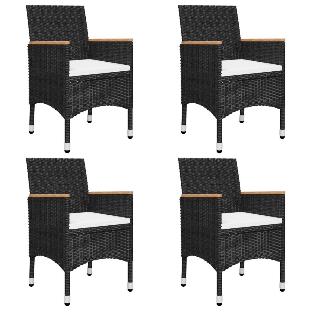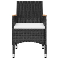 Create a compelling and cohesive aesthetic in your outdoor space with this garden dining set! The dinner table is made of solid acacia wood with an oil finish, which makes it stable, durable and easy to maintain. Featuring a powder-coated steel frame covered with weather-resistant PE rattan, these dining chairs and stools are sturdy and easy to clean. The outdoor chair, designed with curved backrest and armrests, features a more ergonomic shape for maximum comfort. The armrests are beautifully decorated with solid acacia wood, which brings a sense of rustic charm. Each seat comes with a removable thickly padded cushion for adding comfort in your lounging time. Important note: We recommend covering the dining set during rain, snow and frost for its best service to last.
