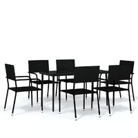 Enjoy a nice meal or afternoon tea in your outdoor space with this garden dining set! Featuring an elegant design, it will become the focal point of your garden and patio! The practical outdoor dining set has a steel frame, making it strong and sturdy. The garden chairs are made of water-resistant and maintenance-free PE rattan, making them perfect for outdoor use. Meanwhile, these outdoor chairs are lightweight and can be stacked to save space when not in use. In addition, the smooth glass tabletop is easy to clean with a damp cloth and excellent for placing meals, drinks and other decorative items. Note: In order to extend the life of your outdoor furniture, we recommend you to clean it regularly and do not leave it outdoors without protection unnecessarily.Clean: Use a mild soap solution.Storing: If possible, store in a cool, dry place indoors. If the product is stored outdoors, protect it with a waterproof cover. Wipe and dry the excess water or snow from flat surfaces after a rain or snowfall. Allow sufficient air circulation to avoid moisture-related damage.