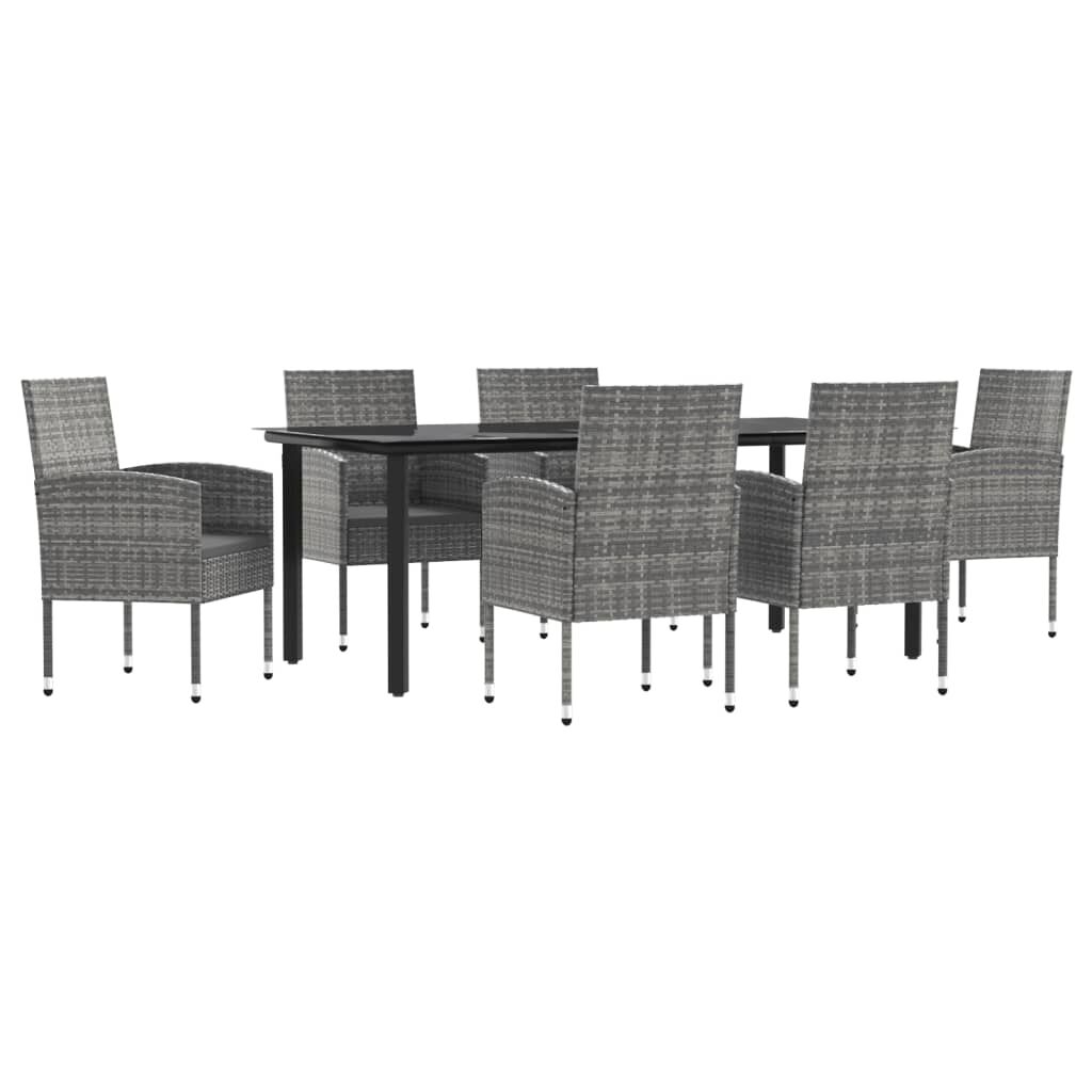 Enjoy a nice meal or afternoon tea in your outdoor space with this garden dining set! Featuring an elegant design, it will become the focal point of your garden and patio! Durable material: Poly rattan is an exceptional resistance material and durable in different weather conditions. It also needs little maintenance.Sturdy frame: This garden table and chair are constructed with a steel frame, which ensures sturdiness and stability.Practical tabletop: The smooth tabletop of the dinner table is made of tempered glass which is easy to clean with a damp cloth. Additionally, the sturdy tabletop is perfect for placing meals, drinks, and other decorative items.Comfortable seat experience: The thick and removable seat cushions are included for your comfort. Good to know:To make sure your outdoor furniture stays beautiful, we recommend protecting it with a waterproof cover.