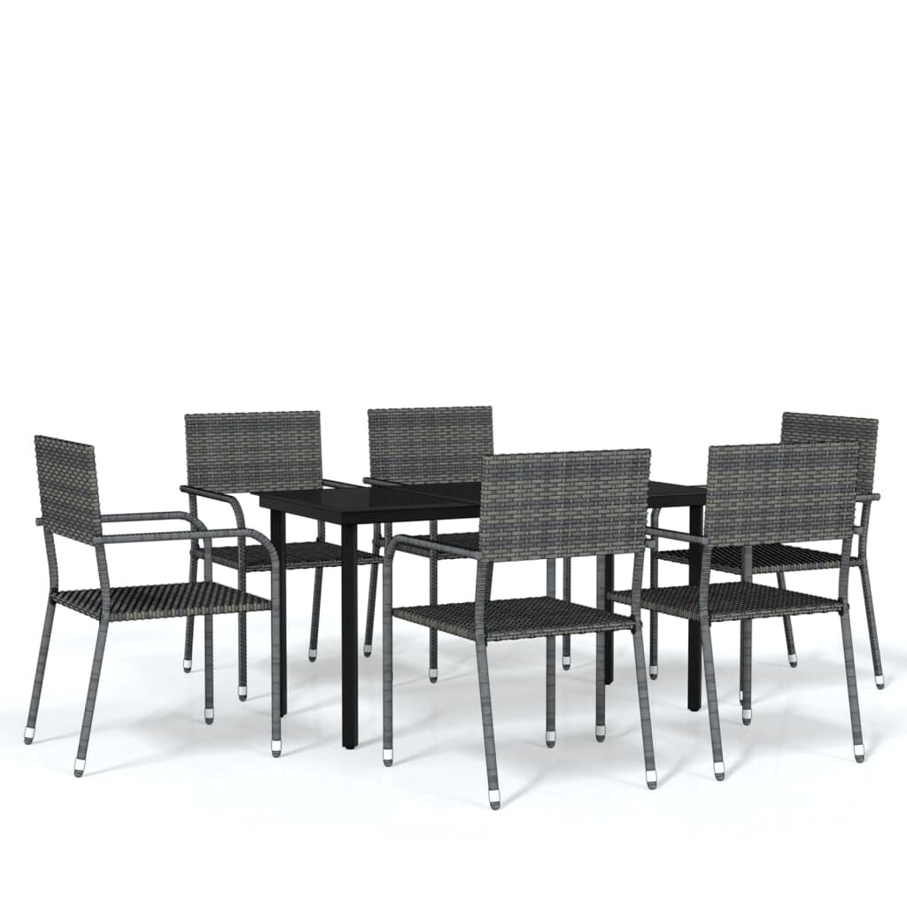 Enjoy a nice meal or afternoon tea in your outdoor space with this garden dining set! Featuring an elegant design, it will become the focal point of your garden and patio! The practical outdoor dining set has a steel frame, making it strong and sturdy. The garden chairs are made of water-resistant and maintenance-free PE rattan, making them perfect for outdoor use. Meanwhile, these outdoor chairs are lightweight and can be stacked to save space when not in use. In addition, the smooth glass tabletop is easy to clean with a damp cloth and excellent for placing meals, drinks and other decorative items. Note: In order to extend the life of your outdoor furniture, we recommend you to clean it regularly and do not leave it outdoors without protection unnecessarily.Clean: Use a mild soap solution.Storing: If possible, store in a cool, dry place indoors. If the product is stored outdoors, protect it with a waterproof cover. Wipe and dry the excess water or snow from flat surfaces after a rain or snowfall. Allow sufficient air circulation to avoid moisture-related damage.