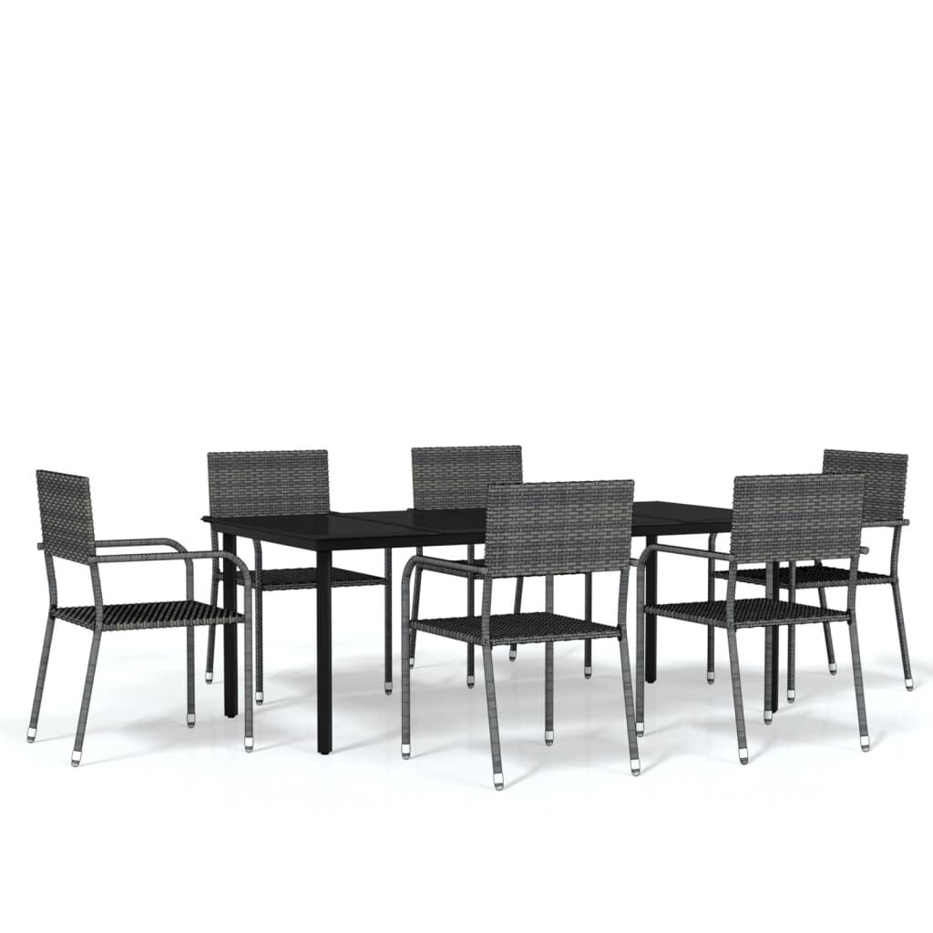 Enjoy a nice meal or afternoon tea in your outdoor space with this garden dining set! Featuring an elegant design, it will become the focal point of your garden and patio! The practical outdoor dining set has a steel frame, making it strong and sturdy. The garden chairs are made of water-resistant and maintenance-free PE rattan, making them perfect for outdoor use. Meanwhile, these outdoor chairs are lightweight and can be stacked to save space when not in use. In addition, the smooth glass tabletop is easy to clean with a damp cloth and excellent for placing meals, drinks and other decorative items. Note: In order to extend the life of your outdoor furniture, we recommend you to clean it regularly and do not leave it outdoors without protection unnecessarily.Clean: Use a mild soap solution.Storing: If possible, store in a cool, dry place indoors. If the product is stored outdoors, protect it with a waterproof cover. Wipe and dry the excess water or snow from flat surfaces after a rain or snowfall. Allow sufficient air circulation to avoid moisture-related damage.