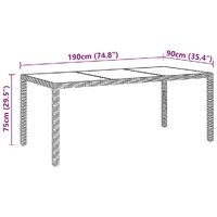 This garden dining set, featuring an elegant design, is an excellent choice for your dining or lounging on your patio or garden. Strong frame: Featuring a powder-coated steel frame covered with weather-resistant PE rattan with UV protection, the table and chairs are durable and stable.Comfortable chairs: The garden chairs are designed in a more ergonomic shape for maximum comfort. Cushions are included for added support.Practical table: The tabletop is made of tempered glass in strong support, easy to clean and maintain. Note:In order to extend the life of your outdoor furniture, we recommend you to clean it regularly and do not leave it outdoors without protection unnecessarily.Clean: Use a mild soap solution.Storing: If possible, store in a cool, dry place indoors. If the product is stored outdoors, protect it with a waterproof cover. Wipe and dry the excess water or snow from flat surfaces after a rain or snowfall. Allow sufficient air circulation to avoid moisture-related damage.