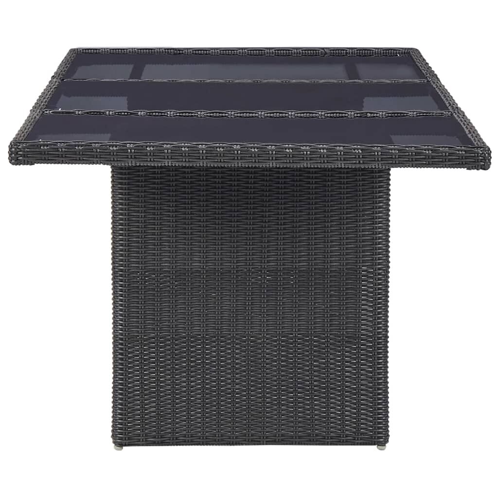 This garden dining set with an elegant design makes a great choice for dining or relaxing in the garden or on the patio! The outdoor furniture set features a sturdy powder-coated steel frame which makes it very stable and durable. Thanks to the weather-resistant PE rattan, the dining set is easy to clean, hardwearing as well as suitable for daily outdoor use. The glass tabletop is also easy to clean with a damp cloth. Moreover, the included soft seat cushions also add the set's extra comfort. The low-maintenance polyester cushion covers can be easily removed and washed. Note: We recommend covering the set in the rain, snow and frost.