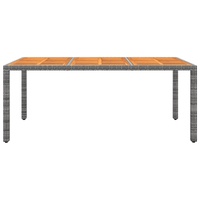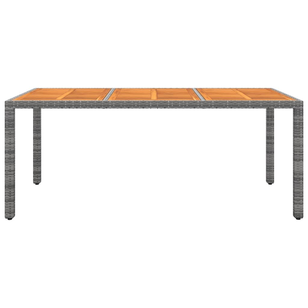 This garden dining set, featuring an elegant design, is an excellent choice for your dining or lounging on your patio or garden. Strong frame: Featuring a powder-coated steel frame covered with weather-resistant PE rattan with UV protection, the table and chairs are durable and stable.Comfortable chairs: The garden chairs are designed in a more ergonomic shape for maximum comfort. Cushions are included for added support.Practical table: The tabletop is made of solid acacia wood in strong support, easy to clean and maintain. Note:In order to extend the life of your outdoor furniture, we recommend you to clean it regularly and do not leave it outdoors without protection unnecessarily.Clean: Use a mild soap solution.Storing: If possible, store in a cool, dry place indoors. If the product is stored outdoors, protect it with a waterproof cover. Wipe and dry the excess water or snow from flat surfaces after a rain or snowfall. Allow sufficient air circulation to avoid moisture-related damage.