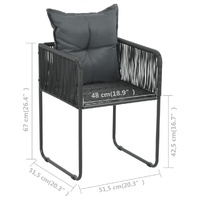 This garden dining set is an excellent choice for your garden, patio or terrace. The garden chair is made of PVC rattan and powder-coated steel frame, making it durable and stable. The table features an aluminium frame and a WPC tabletop. It is easy to clean and suitable for outdoor use. Thanks to the lightweight construction, this outdoor furniture set is easy to move. Additionally, the back cushion is covered with strong fabric and adds extra seating comfort for the chair. Note: We recommend covering the furniture set in the rain, snow or frost.