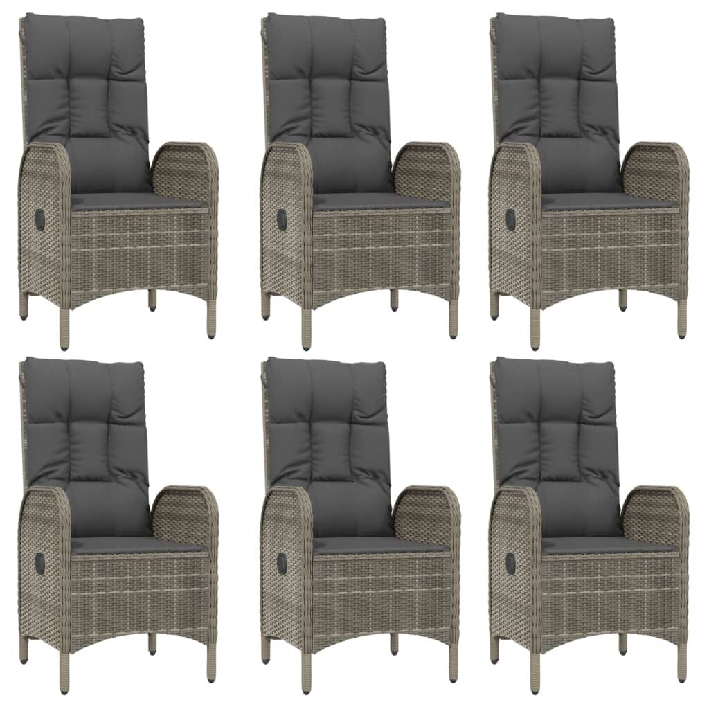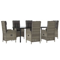 This trendy garden dining set, featuring an elegant and contemporary design, is a great choice for dining or relaxing in your garden. Weather-resistant material: PE rattan, also known as poly rattan, is weather resistant and easy to clean. It remains beautiful on the outside for a long period of time. It offers great quality, convenience and an aesthetic look.Sturdy frame: The powder-coated steel frames make the outdoor dining set sturdy and stable for daily outdoor use.Practical tabletop: The smooth tabletop of the garden table is made of tempered glass which is easy to clean with a damp cloth. Additionally, the sturdy tabletop is perfect for placing meals, drinks, and other decorative items.Reclining function: The garden chairs are specially designed with a reclining function so that you can adjust the backrest as per your comfort.Comfortable seat experience: The backrest adds extra seating comfort for the garden chair. Also, the thickly padded cushions provide comfort for your sitting time. Good to know:To make assembly as easy as possible, each product is delivered with a manual. Note:To make sure your outdoor furniture stays beautiful, we recommend protecting it with a waterproof cover.