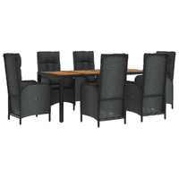 This trendy garden dining set, featuring an elegant and contemporary design, is a great choice for dining or relaxing in your garden. Weather-resistant material: PE rattan, also known as poly rattan, is weather resistant and easy to clean. It remains beautiful on the outside for a long period of time. It offers great quality, convenience and an aesthetic look.Sturdy frame: The powder-coated steel frames make the outdoor dining set sturdy and stable for daily outdoor use.Practical tabletop: The solid acacia wood tabletop is perfect for placing drinks, food and decorations. It's beautiful in appearance and easy to clean.Reclining function: The garden chairs are specially designed with a reclining function so that you can adjust the backrest as per your comfort.Comfortable seat experience: The backrest adds extra seating comfort for the garden chair. Also, the thickly padded cushions provide comfort for your sitting time. Good to know:To make assembly as easy as possible, each product is delivered with a manual. Note:To make sure your outdoor furniture stays beautiful, we recommend protecting it with a waterproof cover.