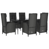 This trendy garden dining set, featuring an elegant and contemporary design, is a great choice for dining or relaxing in your garden. Weather-resistant material: PE rattan, also known as poly rattan, is weather resistant and easy to clean. It remains beautiful on the outside for a long period of time. It offers great quality, convenience and an aesthetic look.Sturdy frame: The powder-coated steel frames make the outdoor dining set sturdy and stable for daily outdoor use.Practical tabletop: The smooth tabletop of the garden table is made of tempered glass which is easy to clean with a damp cloth. Additionally, the sturdy tabletop is perfect for placing meals, drinks, and other decorative items.Reclining function: The garden chairs are specially designed with a reclining function so that you can adjust the backrest as per your comfort.Comfortable seat experience: The backrest adds extra seating comfort for the garden chair. Also, the thickly padded cushions provide comfort for your sitting time. Good to know:To make assembly as easy as possible, each product is delivered with a manual. Note:To make sure your outdoor furniture stays beautiful, we recommend protecting it with a waterproof cover.