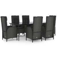 This trendy garden dining set, featuring an elegant and contemporary design, is a great choice for dining or relaxing in your garden. Weather-resistant material: PE rattan, also known as poly rattan, is weather resistant and easy to clean. It remains beautiful on the outside for a long period of time. It offers great quality, convenience and an aesthetic look.Sturdy frame: The powder-coated steel frames make the outdoor dining set sturdy and stable for daily outdoor use.Practical tabletop: The smooth tabletop of the garden table is made of tempered glass which is easy to clean with a damp cloth. Additionally, the sturdy tabletop is perfect for placing meals, drinks, and other decorative items.Reclining function: The garden chairs are specially designed with a reclining function so that you can adjust the backrest as per your comfort.Comfortable seat experience: The backrest adds extra seating comfort for the garden chair. Also, the thickly padded cushions provide comfort for your sitting time. Good to know:To make assembly as easy as possible, each product is delivered with a manual. Note:To make sure your outdoor furniture stays beautiful, we recommend protecting it with a waterproof cover.