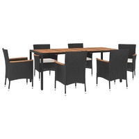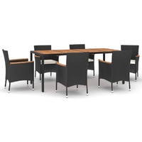 This stylish garden dining set provides you with a leisurely and comfortable time with your family and friends. Weather-resistant material: PE rattan, also known as poly rattan, is weather resistant and easy to clean. It remains beautiful on the outside for a long period of time. It offers great quality, convenience and an aesthetic look. Solid acacia wood: Solid acacia wood is a beautiful natural material. Acacia wood is a tropical hardwood, which is dense, sturdy, and durable.Sturdy and stable frame: The powder-coated steel frame of the dining set ensures sturdiness and stability. Comfortable seat experience: The thickly padded cushions of the dining chairs provide the ultimate comfort for your sitting time.Practical table: The tabletop of the dining table is made of solid acacia wood which is easy to clean with a damp cloth. Additionally, the sturdy tabletop is perfect for placing meals, drinks, and other decorative items.Flexible design: Thanks to the lightweight construction, these garden dining chairs are easy to move. Note:To make sure your outdoor furniture stays beautiful, we recommend protecting it with a waterproof cover.