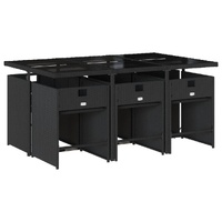 This garden dining set is a great choice for al fresco dining or just relaxing in the garden, backyard, or on the patio. Durable material: PE rattan, also known as poly rattan, is a strong, low-maintenance synthetic material that looks like natural rattan. It's lightweight, easy to clean, and commonly used for outdoor furniture due to its durability and weather-resistant properties.Compact storage: These chairs have a flap backrest that can be folded down, making it easy to store them under the table. When folded, they neatly fit under the table, forming a space-saving cube shape.Comfortable seat experience: This outdoor furniture, complete with thickly padded cushions, offers a comfortable seating experience.Removable and washable cover: These seat cushions feature removable covers for easy washing and maintenance. The chair cushion covers have a flap at the back for easy attachment to the chairs.Stable and easy-to-clean tabletop: This garden table has a tempered glass table top that is sturdy, durable, and easy to clean with a damp cloth. Good to know: To make sure your outdoor furniture stays beautiful, we recommend protecting it with a waterproof cover.