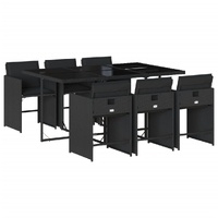 This garden dining set is a great choice for al fresco dining or just relaxing in the garden, backyard, or on the patio. Durable material: PE rattan, also known as poly rattan, is a strong, low-maintenance synthetic material that looks like natural rattan. It's lightweight, easy to clean, and commonly used for outdoor furniture due to its durability and weather-resistant properties.Compact storage: These chairs have a flap backrest that can be folded down, making it easy to store them under the table. When folded, they neatly fit under the table, forming a space-saving cube shape.Comfortable seat experience: This outdoor furniture, complete with thickly padded cushions, offers a comfortable seating experience.Removable and washable cover: These seat cushions feature removable covers for easy washing and maintenance. The chair cushion covers have a flap at the back for easy attachment to the chairs.Stable and easy-to-clean tabletop: This garden table has a tempered glass table top that is sturdy, durable, and easy to clean with a damp cloth. Good to know: To make sure your outdoor furniture stays beautiful, we recommend protecting it with a waterproof cover.