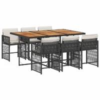 This garden dining set is a great choice for al fresco dining or just relaxing in the garden, backyard, or patio. Durable material: PE rattan, also known as poly rattan, is a strong, low-maintenance synthetic material that looks like natural rattan. It's lightweight, easy to clean, and commonly used for outdoor furniture due to its durability and weather-resistant properties.Compact storage: These chairs have a flap backrest that can be folded down, making it easy to store them under the table. When folded, they neatly fit under the table, forming a space-saving cube shape.Comfortable seat experience: This outdoor furniture, complete with thickly padded cushions, offers a comfortable seating experience.Removable and washable cover: These seat cushions feature removable covers for easy washing and maintenance. The cushion covers have a flap at the back for easy attachment to the backrests.Stable and easy-to-clean tabletop: This garden table has an acacia wood top that is sturdy, durable, and easy to clean with a damp cloth. Good to know:To make sure your outdoor furniture stays beautiful, we recommend protecting it with a waterproof cover.