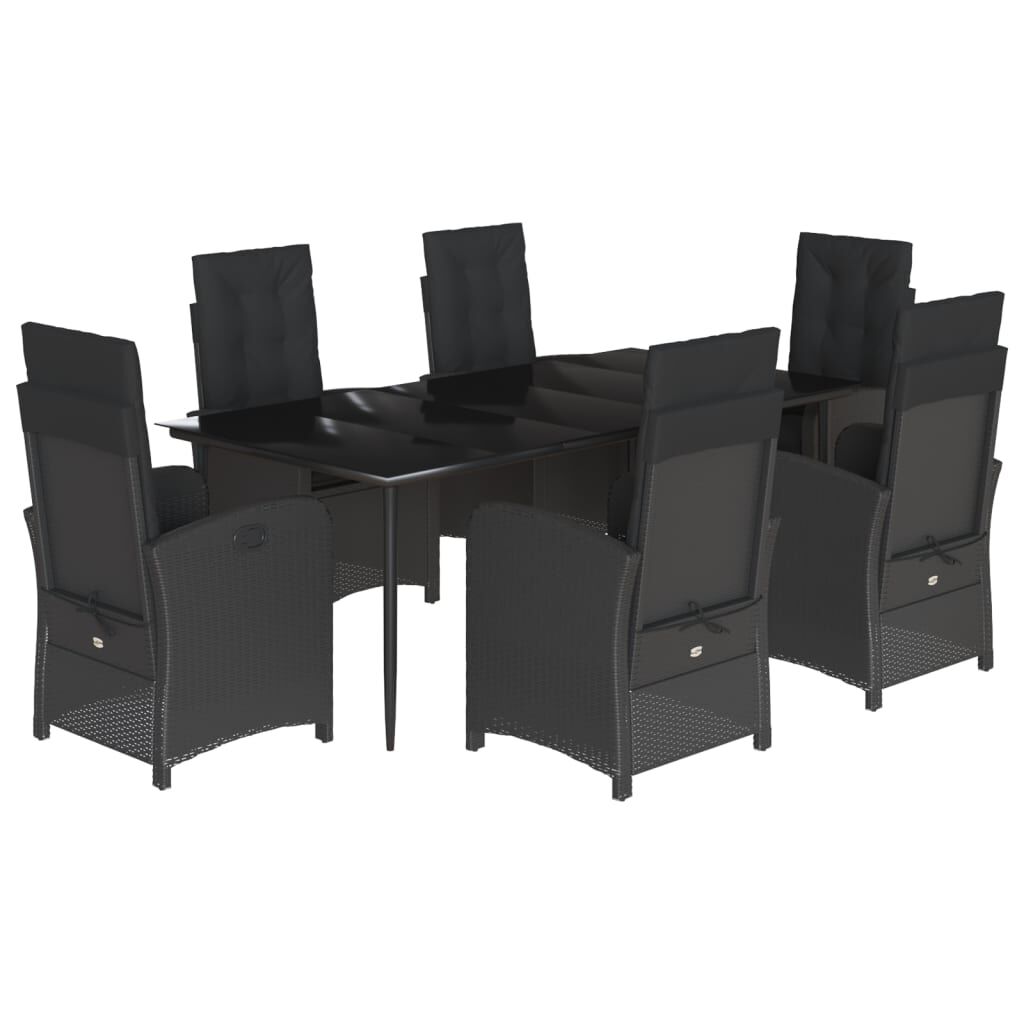 This garden dining set is a great choice for al fresco dining or just relaxing in the garden, backyard, or on the patio. Durable material: PE rattan, also known as poly rattan, is a strong, low-maintenance synthetic material that looks like natural rattan. It's lightweight, easy to clean, and commonly used for outdoor furniture due to its durability and weather-resistant properties.Adjustable backrest: This garden seat has a handle. You can adjust the backrest to any position by pulling the handle, and quickly return it to its original position.Comfortable seat experience: This outdoor furniture, complete with thickly padded cushions, offers a comfortable seating experience.Removable and washable cover: These seat cushions feature removable covers for easy washing and maintenance. The back cushions have a flap at the back for easy attachment to the backrests.Glass tabletop: The outdoor table's top is made from strong and durable tempered glass, making it easy to clean with a damp cloth and adding a touch of elegance to your outdoor space. Good to know:To make sure your outdoor furniture stays beautiful, we recommend protecting it with a waterproof cover.