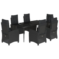 This garden dining set is a great choice for al fresco dining or just relaxing in the garden, backyard, or patio. Durable material: PE rattan, also known as poly rattan, is a strong, low-maintenance synthetic material that looks like natural rattan. It's lightweight, easy to clean, and commonly used for outdoor furniture due to its durability and weather-resistant properties.Adjustable backrest and footrest: This garden seat has a handle. You can adjust the backrest and footrest to any position by pulling the handle, and quickly return them to their original positions.Glass tabletop: The outdoor table's top is made from strong and durable tempered glass, making it easy to clean with a damp cloth and adding a touch of elegance to your outdoor space.Comfortable seat experience: This outdoor furniture, complete with thickly padded cushions, offers a comfortable seating experience.Removable and washable cover: These seat cushions feature removable covers for easy washing and maintenance. Good to know:To make sure your outdoor furniture stays beautiful, we recommend protecting it with a waterproof cover.