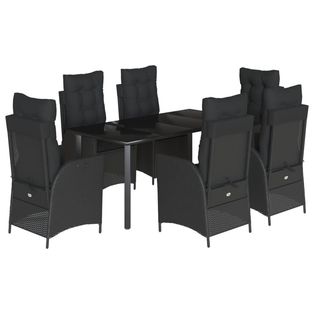 This garden dining set is a great choice for al fresco dining or just relaxing in the garden, backyard, or on the patio. Durable material: PE rattan, also known as poly rattan, is a strong, low-maintenance synthetic material that looks like natural rattan. It's lightweight, easy to clean, and commonly used for outdoor furniture due to its durability and weather-resistant properties.Adjustable backrest: This garden seat has a handle. You can adjust the backrest to any position by pulling the handle, and quickly return it to its original position.Comfortable seat experience: This outdoor furniture, complete with thickly padded cushions, offers a comfortable seating experience.Removable and washable cover: These seat cushions feature removable covers for easy washing and maintenance. The back cushions have a flap at the back for easy attachment to the backrests.Glass tabletop: The outdoor table's top is made from strong and durable tempered glass, making it easy to clean with a damp cloth and adding a touch of elegance to your outdoor space. Good to know: To make sure your outdoor furniture stays beautiful, we recommend protecting it with a waterproof cover.