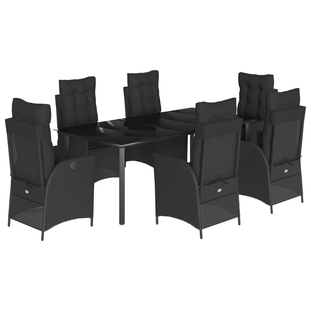 This garden dining set is a great choice for al fresco dining or just relaxing in the garden, backyard, or on the patio. Durable material: PE rattan, also known as poly rattan, is a strong, low-maintenance synthetic material that looks like natural rattan. It's lightweight, easy to clean, and commonly used for outdoor furniture due to its durability and weather-resistant properties.Adjustable backrest: This garden seat has a handle. You can adjust the backrest to any position by pulling the handle, and quickly return it to its original position.Comfortable seat experience: This outdoor furniture, complete with thickly padded cushions, offers a comfortable seating experience.Removable and washable cover: These seat cushions feature removable covers for easy washing and maintenance. The back cushions have a flap at the back for easy attachment to the backrests.Glass tabletop: The outdoor table's top is made from strong and durable tempered glass, making it easy to clean with a damp cloth and adding a touch of elegance to your outdoor space. Good to know: To make sure your outdoor furniture stays beautiful, we recommend protecting it with a waterproof cover.