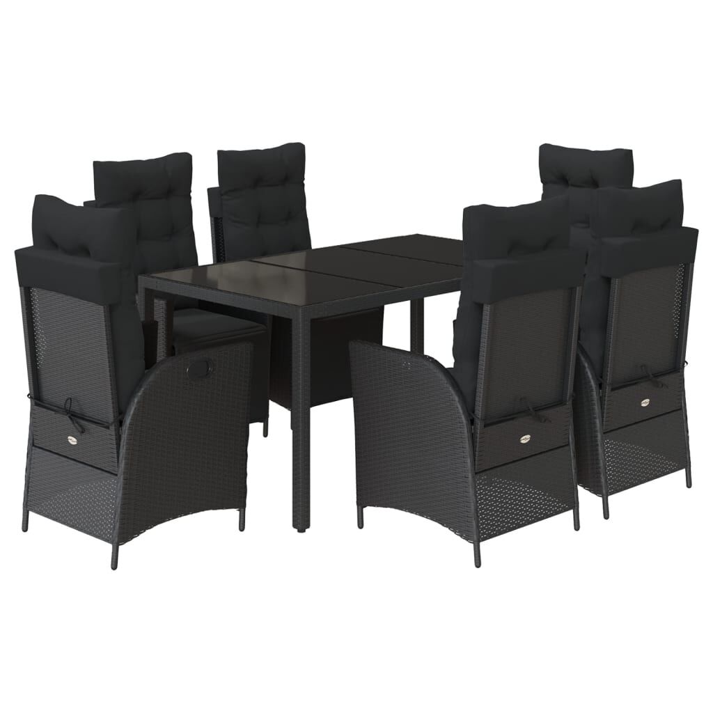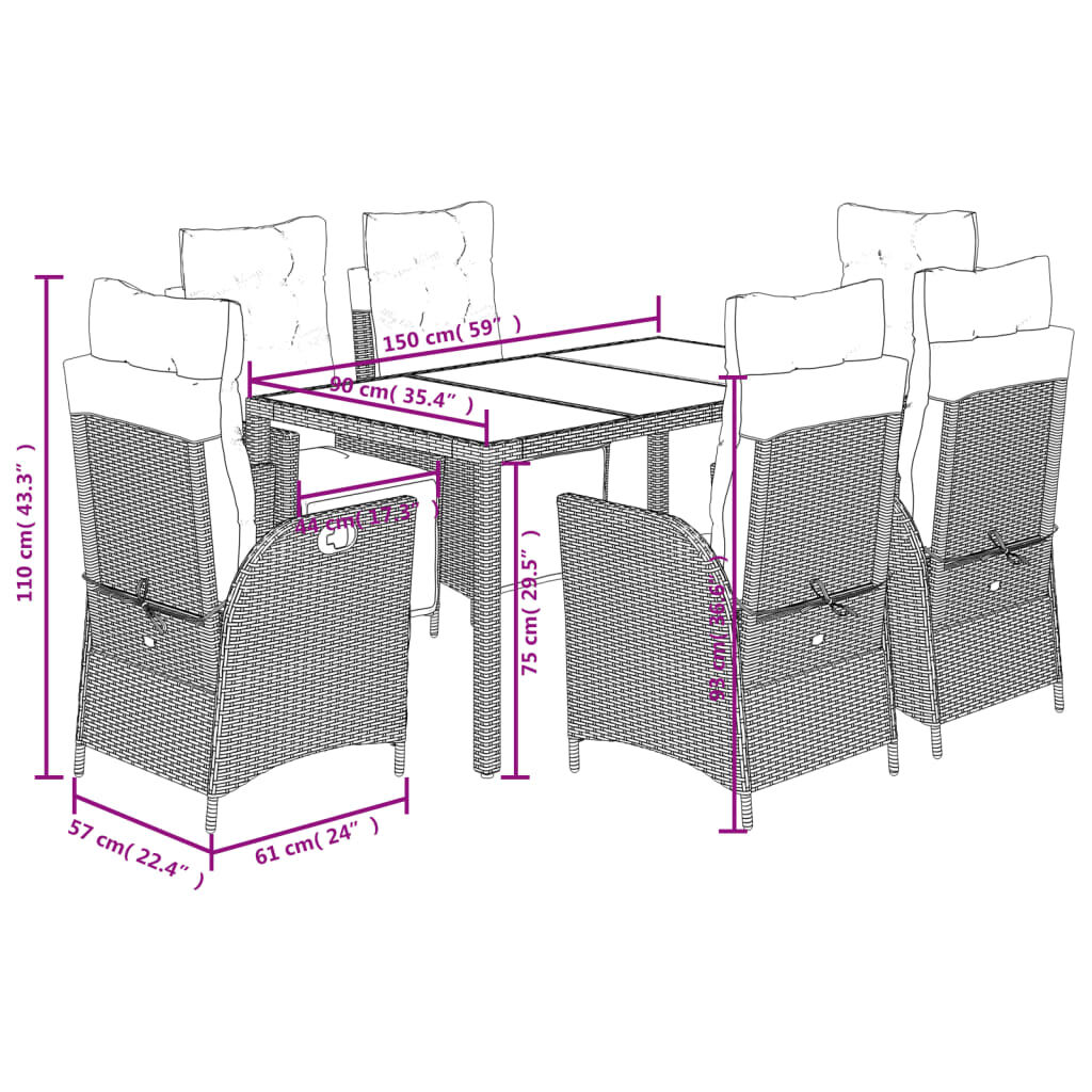 This garden dining set is a great choice for al fresco dining or just relaxing in the garden, backyard, or patio. Durable material: PE rattan, also known as poly rattan, is a strong, low-maintenance synthetic material that looks like natural rattan. It's lightweight, easy to clean, and commonly used for outdoor furniture due to its durability and weather-resistant properties.Adjustable backrest and footrest: This garden seat has a handle. You can adjust the backrest and footrest to any position by pulling the handle, and quickly return them to their original positions.Comfortable seat experience: This outdoor furniture, complete with thickly padded cushions, offers a comfortable seating experience.Removable and washable cover: These seat cushions feature removable covers for easy washing and maintenance. The back cushions have a flap at the back for easy attachment to the backrests.Glass tabletop: The outdoor table's top is made from strong and durable tempered glass, making it easy to clean with a damp cloth and adding a touch of elegance to your outdoor space. Good to know:To make sure your outdoor furniture stays beautiful, we recommend protecting it with a waterproof cover.