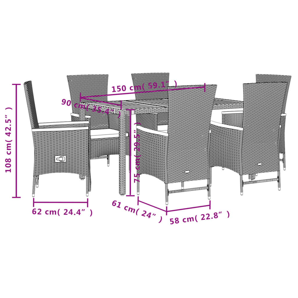 This garden dining set is a great choice for al fresco dining or just relaxing in the garden, backyard, or on the patio. Durable material: PE rattan, also known as poly rattan, is a strong, low-maintenance synthetic material that looks like natural rattan. It's lightweight, easy to clean, and commonly used for outdoor furniture due to its durability and weather-resistant properties.Adjustable backrest: This garden seat has a handle. You can adjust the backrest to any position by pulling the handle, and quickly return it to its original position.Comfortable seat experience: This outdoor furniture, complete with thickly padded cushions, offers a comfortable seating experience.Removable and washable cover: These seat cushions feature removable covers for easy washing and maintenance.Stable and easy-to-clean tabletop: This garden table has an acacia wood top that is sturdy, durable, and easy to clean with a damp cloth. Good to know:To make sure your outdoor furniture stays beautiful, we recommend protecting it with a waterproof cover.