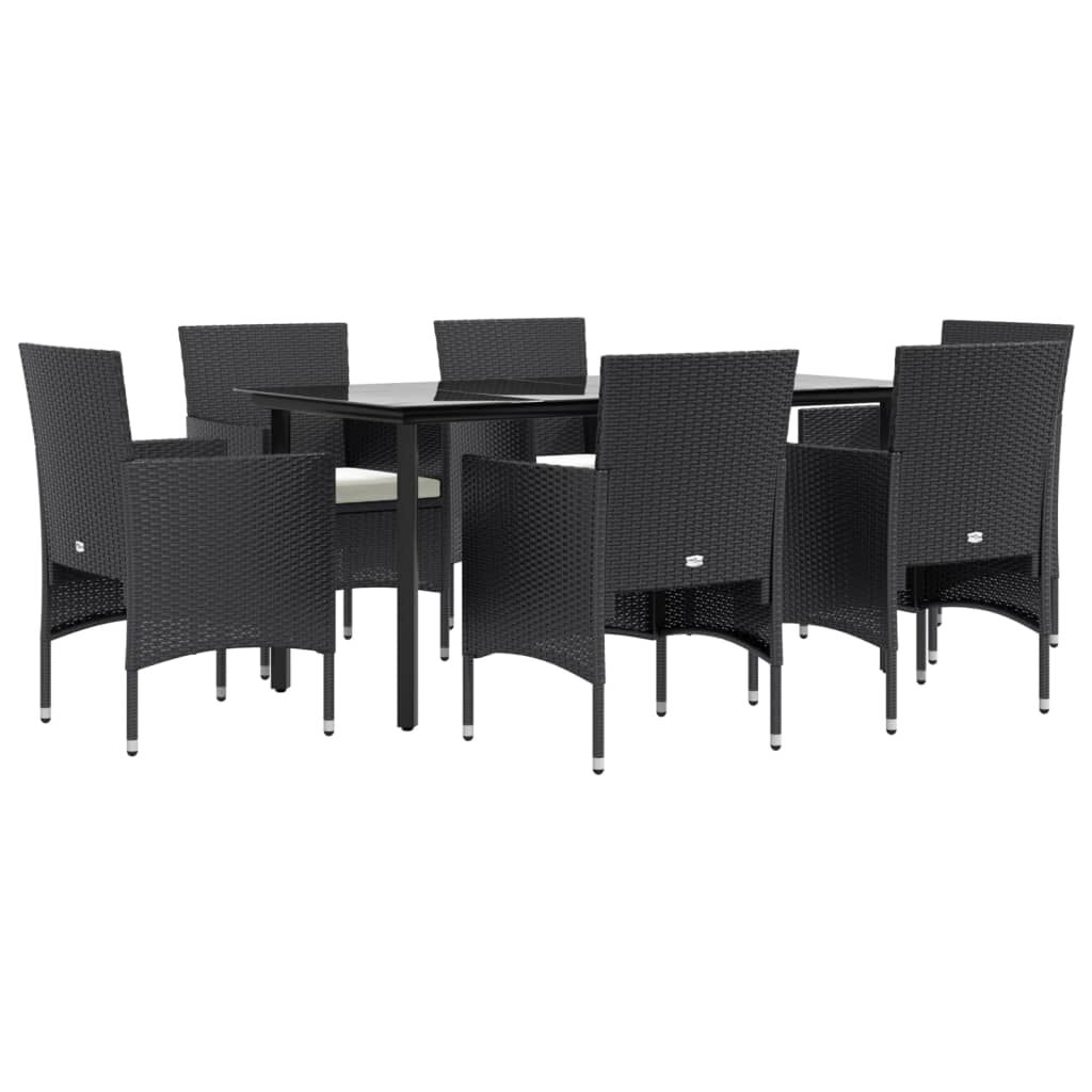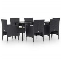 This garden dining set, with an elegant and contemporary design, is a great choice for dining or relaxing in the garden. Weather-resistant material: Made of weather-resistant and water-resistant PE rattan, this garden dining set is easy to clean, hard-wearing and suitable for daily use.Sturdy frame: The powder-coated steel frames make the outdoor dining set sturdy and stable for daily outdoor use.Practical tabletop: The smooth tabletop of the dining table is made of tempered glass which is easy to clean with a damp cloth. Additionally, the sturdy tabletop is perfect for placing meals, drinks, and other decorative items.Comfortable design: Designed with curved backrests and armrests, these outdoor chairs provide maximum comfort.Extra comfort: The thickly padded cushions provide ultimate comfort during your sitting time. Note:In order to extend the life of your outdoor furniture, we recommend you to protect it with a waterproof cover.Each product comes with an assembly manual in the box for easy assembly.