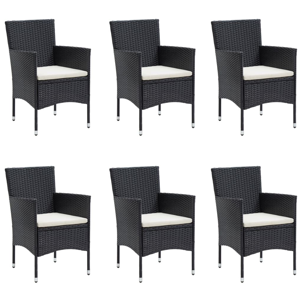 This garden dining set, with an elegant and contemporary design, is a great choice for dining or relaxing in the garden. Weather-resistant material: Made of weather-resistant and water-resistant PE rattan, this garden dining set is easy to clean, hard-wearing and suitable for daily use.Sturdy frame: The powder-coated steel frames make the outdoor dining set sturdy and stable for daily outdoor use.Practical tabletop: The smooth tabletop of the dining table is made of tempered glass which is easy to clean with a damp cloth. Additionally, the sturdy tabletop is perfect for placing meals, drinks, and other decorative items.Comfortable design: Designed with curved backrests and armrests, these outdoor chairs provide maximum comfort.Extra comfort: The thickly padded cushions provide ultimate comfort during your sitting time. Note:In order to extend the life of your outdoor furniture, we recommend you to protect it with a waterproof cover.Each product comes with an assembly manual in the box for easy assembly.