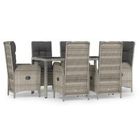 This trendy garden dining set, featuring an elegant and contemporary design, is a great choice for dining or relaxing in your garden. Weather-resistant material: PE rattan, also known as poly rattan, is weather resistant and easy to clean. It remains beautiful on the outside for a long period of time. It offers great quality, convenience and an aesthetic look.Sturdy frame: The powder-coated steel frames make the outdoor dining set sturdy and stable for daily outdoor use.Practical tabletop: The smooth tabletop of the garden table is made of tempered glass which is easy to clean with a damp cloth. Additionally, the sturdy tabletop is perfect for placing meals, drinks, and other decorative items.Reclining function: The garden chairs are specially designed with a reclining function so that you can adjust the backrest as per your comfort.Comfortable seat experience: The backrest adds extra seating comfort for the garden chair. Also, the thickly padded cushions provide comfort for your sitting time. Good to know:To make assembly as easy as possible, each product is delivered with a manual. Note:To make sure your outdoor furniture stays beautiful, we recommend protecting it with a waterproof cover.