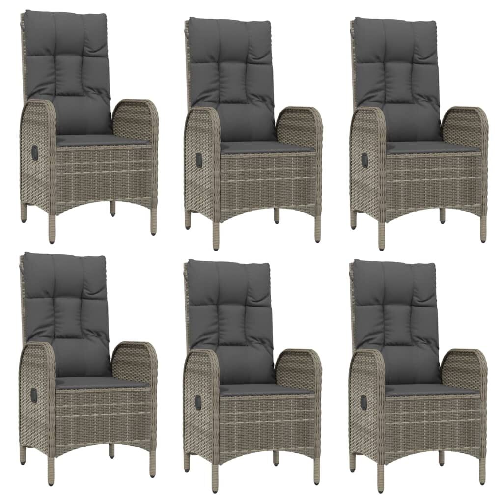 This trendy garden dining set, featuring an elegant and contemporary design, is a great choice for dining or relaxing in your garden. Weather-resistant material: PE rattan, also known as poly rattan, is weather resistant and easy to clean. It remains beautiful on the outside for a long period of time. It offers great quality, convenience and an aesthetic look.Sturdy frame: The powder-coated steel frames make the outdoor dining set sturdy and stable for daily outdoor use.Practical tabletop: The solid acacia wood tabletop is perfect for placing drinks, food and decorations. It's beautiful in appearance and easy to clean.Reclining function: The garden chairs are specially designed with a reclining function so that you can adjust the backrest as per your comfort.Comfortable seat experience: The backrest adds extra seating comfort for the garden chair. Also, the thickly padded cushions provide comfort for your sitting time. Good to know:To make assembly as easy as possible, each product is delivered with a manual. Note:To make sure your outdoor furniture stays beautiful, we recommend protecting it with a waterproof cover.