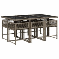 This garden dining set is a great choice for al fresco dining or just relaxing in the garden, backyard, or on the patio. Durable material: PE rattan, also known as poly rattan, is a strong, low-maintenance synthetic material that looks like natural rattan. It's lightweight, easy to clean, and commonly used for outdoor furniture due to its durability and weather-resistant properties.Compact storage: These chairs have a flap backrest that can be folded down, making it easy to store them under the table. When folded, they neatly fit under the table, forming a space-saving cube shape.Comfortable seat experience: This outdoor furniture, complete with thickly padded cushions, offers a comfortable seating experience.Removable and washable cover: These seat cushions feature removable covers for easy washing and maintenance. The cushion covers have a flap at the back for easy attachment to the backrests.Glass tabletop: The outdoor table's top is made from strong and durable tempered glass, making it easy to clean with a damp cloth and adding a touch of elegance to your outdoor space. Good to know:To make sure your outdoor furniture stays beautiful, we recommend protecting it with a waterproof cover.
