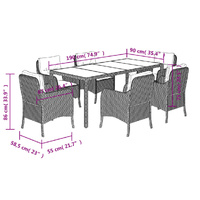 This garden dining set is a great choice for al fresco dining or just relaxing in the garden, backyard, or patio. Durable material: PE rattan, also known as poly rattan, is a strong, low-maintenance synthetic material that looks like natural rattan. It's lightweight, easy to clean, and commonly used for outdoor furniture due to its durability and weather-resistant properties.Comfortable seat experience: This outdoor furniture, complete with thickly padded cushions, offers a comfortable seating experience.Removable and washable cover: These seat cushions feature removable covers for easy washing and maintenance. The chair cushion covers have a flap at the back for easy attachment to the chairs.Glass tabletop: The outdoor table's top is made from strong and durable tempered glass, making it easy to clean with a damp cloth and adding a touch of elegance to your outdoor space.Robust and stable frame: The powder-coated steel frame ensures the garden furniture is strong and stable for daily outdoor use. Good to know:To make sure your outdoor furniture stays beautiful, we recommend protecting it with a waterproof cover.
