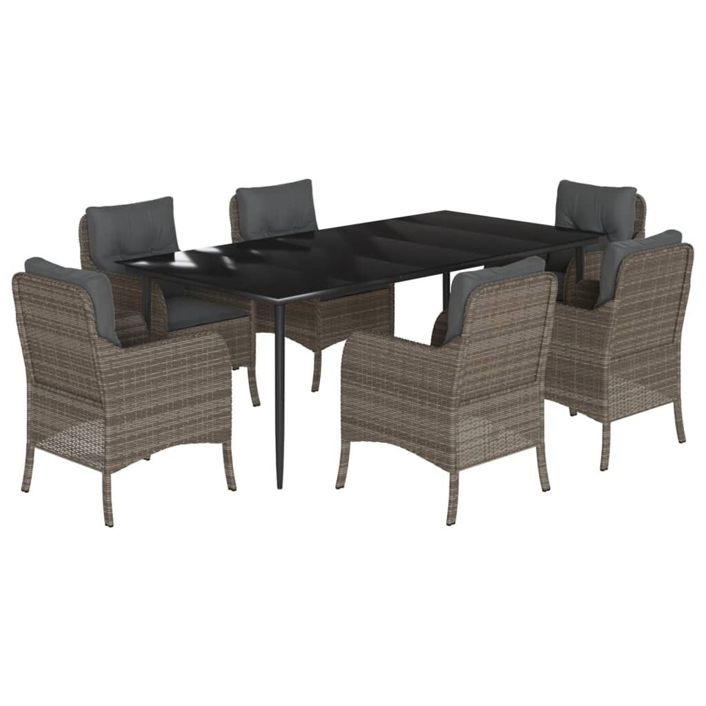 This garden dining set is a great choice for al fresco dining or just relaxing in the garden, backyard, or patio. Durable material: PE rattan, also known as poly rattan, is a strong, low-maintenance synthetic material that looks like natural rattan. It's lightweight, easy to clean, and commonly used for outdoor furniture due to its durability and weather-resistant properties.Comfortable seat experience: This outdoor furniture, complete with thickly padded cushions, offers a comfortable seating experience.Removable and washable cover: These seat cushions feature removable covers for easy washing and maintenance.Glass tabletop: The outdoor table's top is made from strong and durable tempered glass, making it easy to clean with a damp cloth and adding a touch of elegance to your outdoor space.Robust and stable frame: The powder-coated steel frame ensures that the garden furniture is strong and stable for daily outdoor use. Good to know:To make sure your outdoor furniture stays beautiful, we recommend protecting it with a waterproof cover.