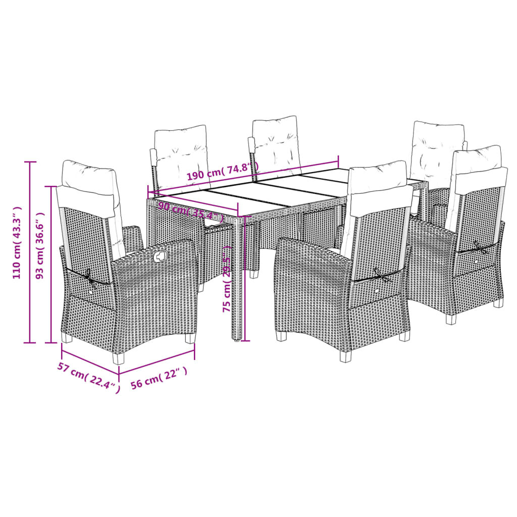 This garden dining set is a great choice for al fresco dining or just relaxing in the garden, backyard, or patio. Durable material: PE rattan, also known as poly rattan, is a strong, low-maintenance synthetic material that looks like natural rattan. It's lightweight, easy to clean, and commonly used for outdoor furniture due to its durability and weather-resistant properties. Adjustable backrest: This garden seat has a handle. You can adjust the backrest to any position by pulling the handle, and quickly return it to its original position.Glass tabletop: The outdoor table's top is made from strong and durable tempered glass, making it easy to clean with a damp cloth and adding a touch of elegance to your outdoor space. Comfortable seat experience: This outdoor furniture, complete with thickly padded cushions, offers a comfortable seating experience. Removable and washable cover: These seat cushions feature removable covers for easy washing and maintenance. Good to know:To make sure your outdoor furniture stays beautiful, we recommend protecting it with a waterproof cover.