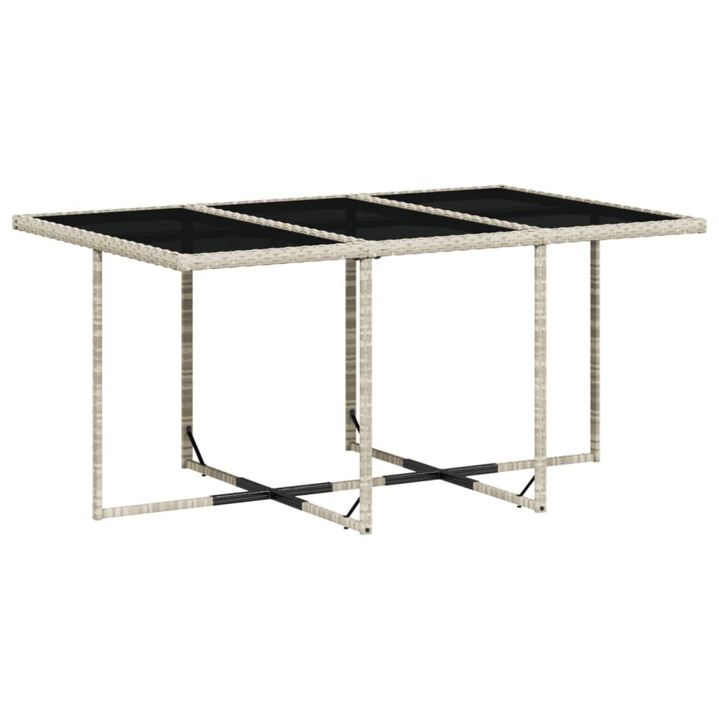 This garden dining set is a great choice for al fresco dining or just relaxing in the garden, backyard, or on the patio. Durable material: PE rattan, also known as poly rattan, is a strong, low-maintenance synthetic material that looks like natural rattan. It's lightweight, easy to clean, and commonly used for outdoor furniture due to its durability and weather-resistant properties.Compact storage: These chairs have a flap backrest that can be folded down, making it easy to store them under the table. When folded, they neatly fit under the table, forming a space-saving cube shape.Comfortable seat experience: This outdoor furniture, complete with thickly padded cushions, offers a comfortable seating experience.Removable and washable cover: These seat cushions feature removable covers for easy washing and maintenance. The cushion covers have a flap at the back for easy attachment to the backrests.Glass tabletop: The outdoor table's top is made from strong and durable tempered glass, making it easy to clean with a damp cloth and adding a touch of elegance to your outdoor space. Good to know:To make sure your outdoor furniture stays beautiful, we recommend protecting it with a waterproof cover.