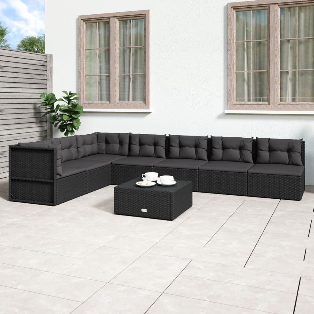 This trendy garden lounge set, featuring an elegant and contemporary design, is a great choice for relaxing in your garden. Durable material: PE rattan, also known as poly rattan, is weather resistant and easy to clean. It remains beautiful on the outside for a long period of time. It's more economical than other materials, while offering great quality, convenience and an aesthetic look.Stable frame: Steel is an exceptionally hard and strong material. It offers sturdiness and stability. The powder coating on steel creates a protective layer against wear and tear.Modular design: Each piece is easy to move around, which makes it easy for you to create different layouts that fit your needs. You can also find single items in our webshop to arrange your own furniture patterns.Adjustable seat: The seat of the corner sofa can be adjusted at 3 angles for a more comfortable sitting or lying position.Comfortable seat experience: With the thickly padded seat and back cushions, the outdoor lounge set is highly comfortable. Good to know:To make assembly as easy as possible, each product is delivered with a manual. Note:To make sure your outdoor furniture stays beautiful, we recommend protecting it with a waterproof cover.