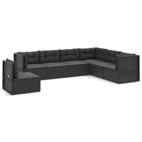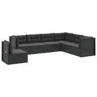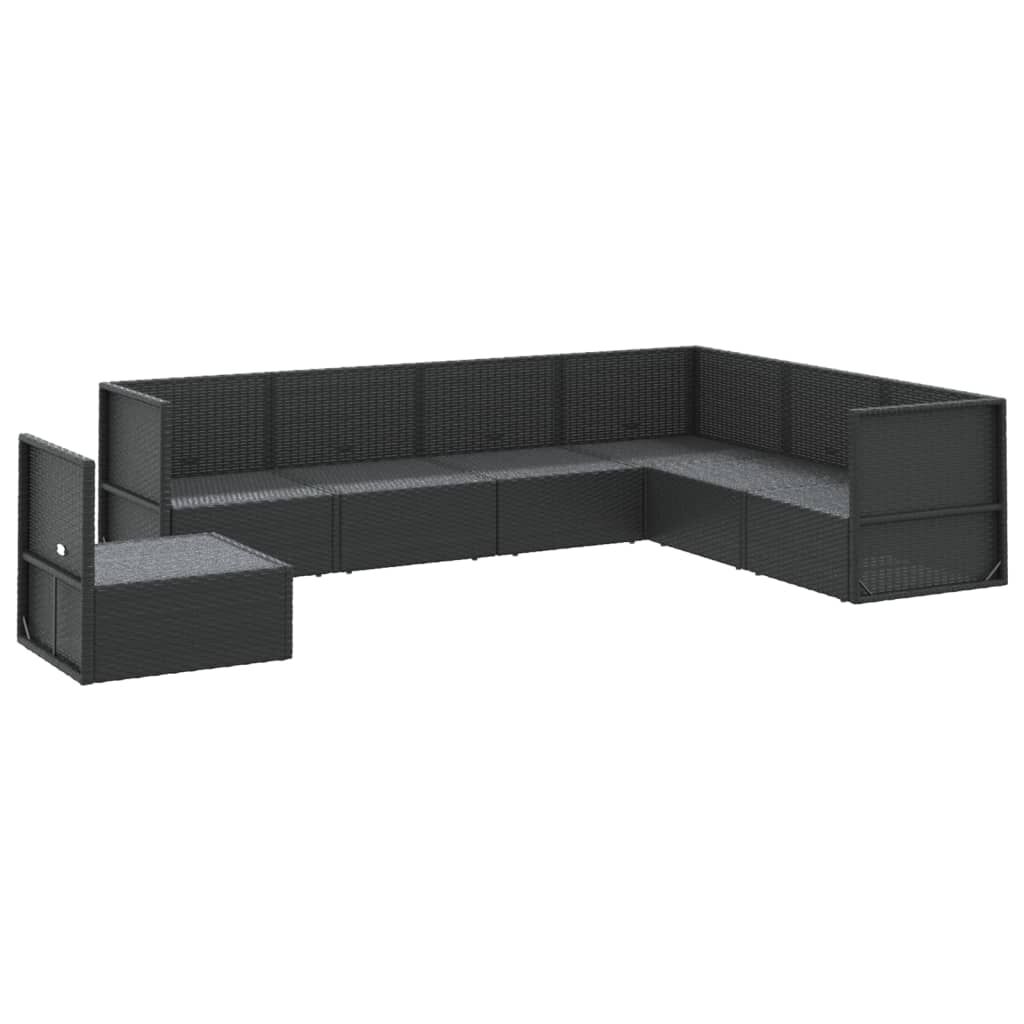 7 Piece Garden Lounge Set with Cushions Black Poly Rattan