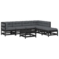 7 Piece Garden Lounge Set with Cushions Black Solid Wood