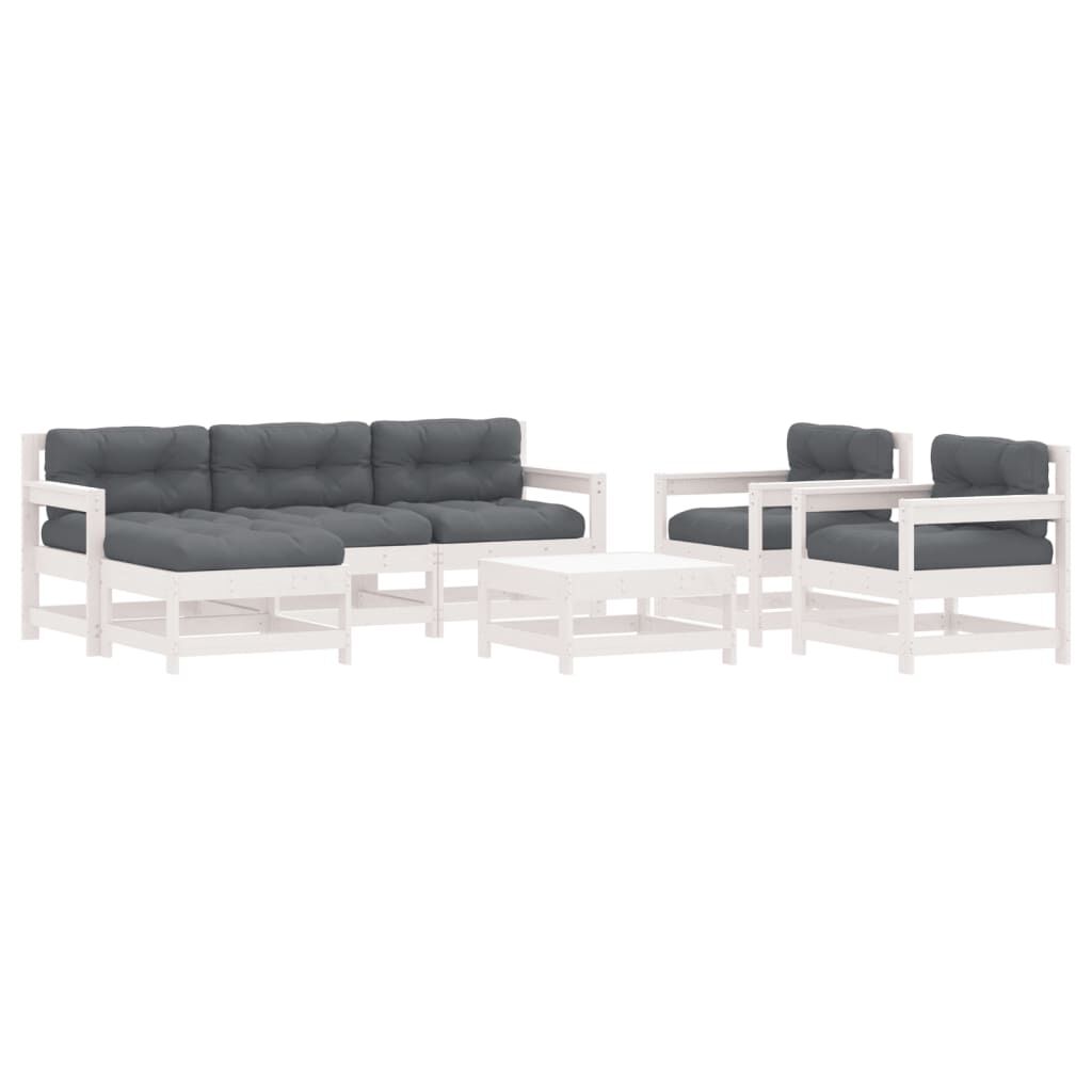 This wooden garden lounge set, standing out with the slatted design and soft cushions, will make a great addition to your garden, patio, or terrace for enjoying a cosy time with your family or friends. Solid pine wood: Solid pine wood is a beautiful natural material. Pine wood has a straight grain, and the knots give the material its signature, rustic look.Sturdy and stable frame: The wooden frame makes the lounge set sturdy and stable for daily outdoor use.Comfortable seat experience: The backrest and armrest add extra seating comfort for the garden furniture set. Also, the thickly padded cushions provide comfort for your sitting time.Modular design: The sofa set is flexible and easy to move around. You can combine it with other modular segments in the webshop to create your own personal garden lounge set configurations! Good to know:To make sure your outdoor furniture stays beautiful, we recommend protecting it with a waterproof cover.
